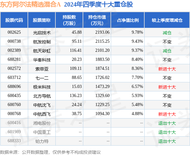东方阿尔法精选混合A为混合型-灵活基金,根据最新一期基金季报显示,该基金资产配置:股票占净值比93.33%,债券占净值比5.27%,现金占净值比1.55%。基金十大重仓股如下: